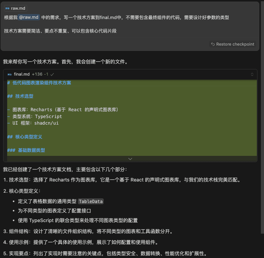 - 手动修改:和预期偏差不多时,可以手动修改 final.md 中的内容,以免重新生成改变了方案