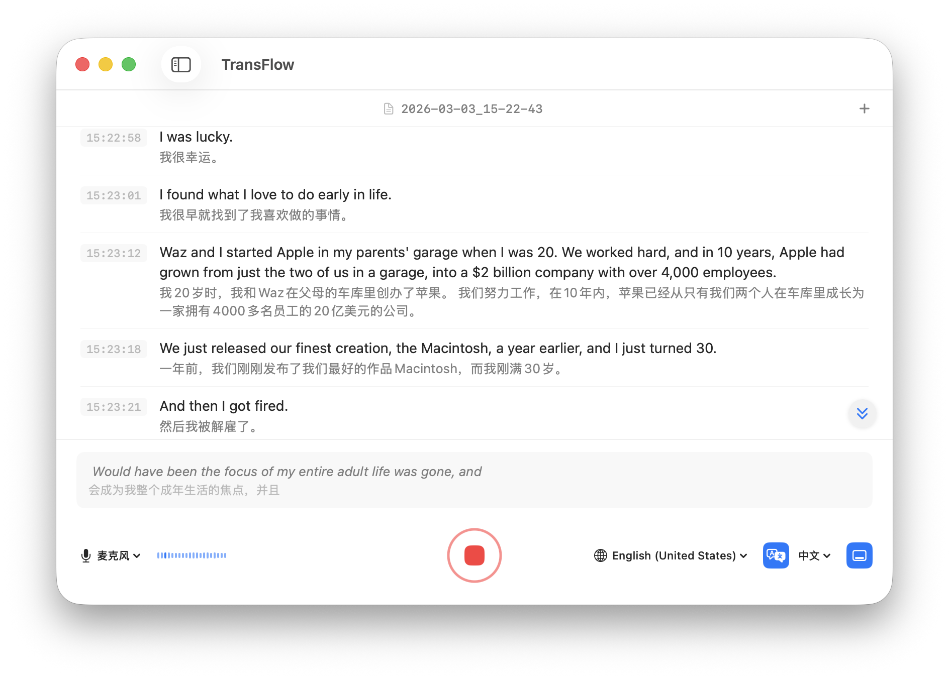 最近我做了一个小 App:实时监听会议内容,再把它转成字幕和翻译。